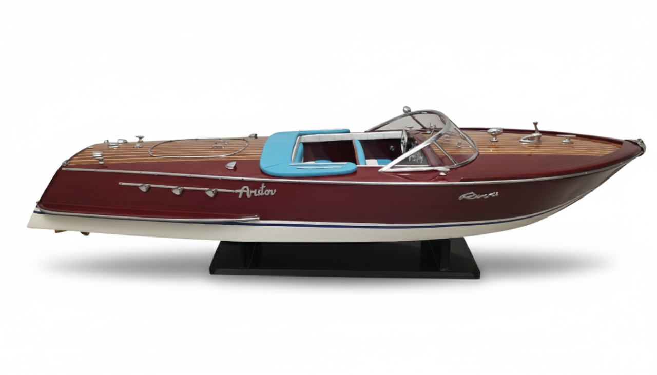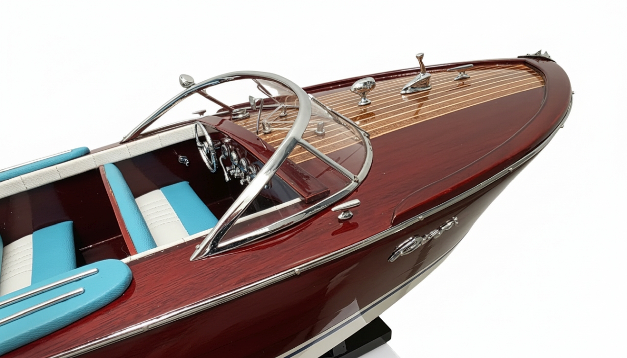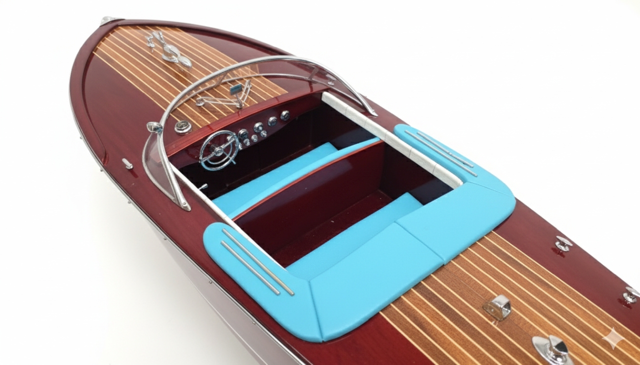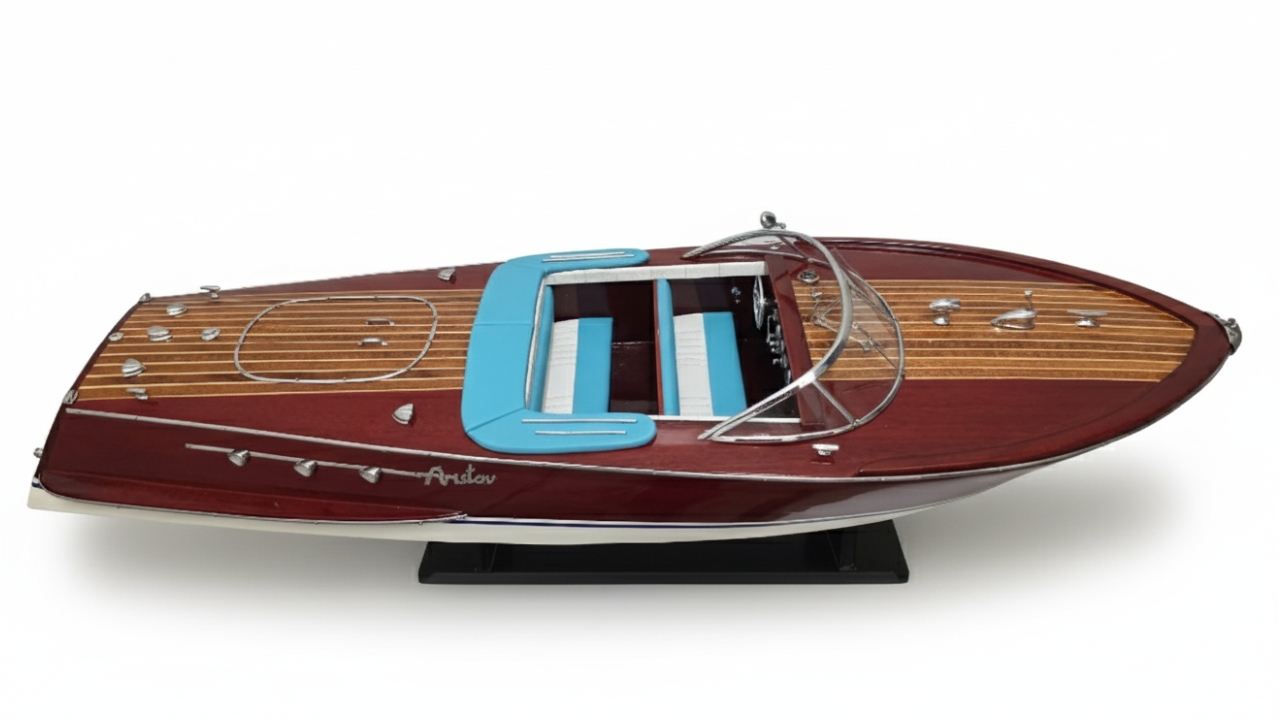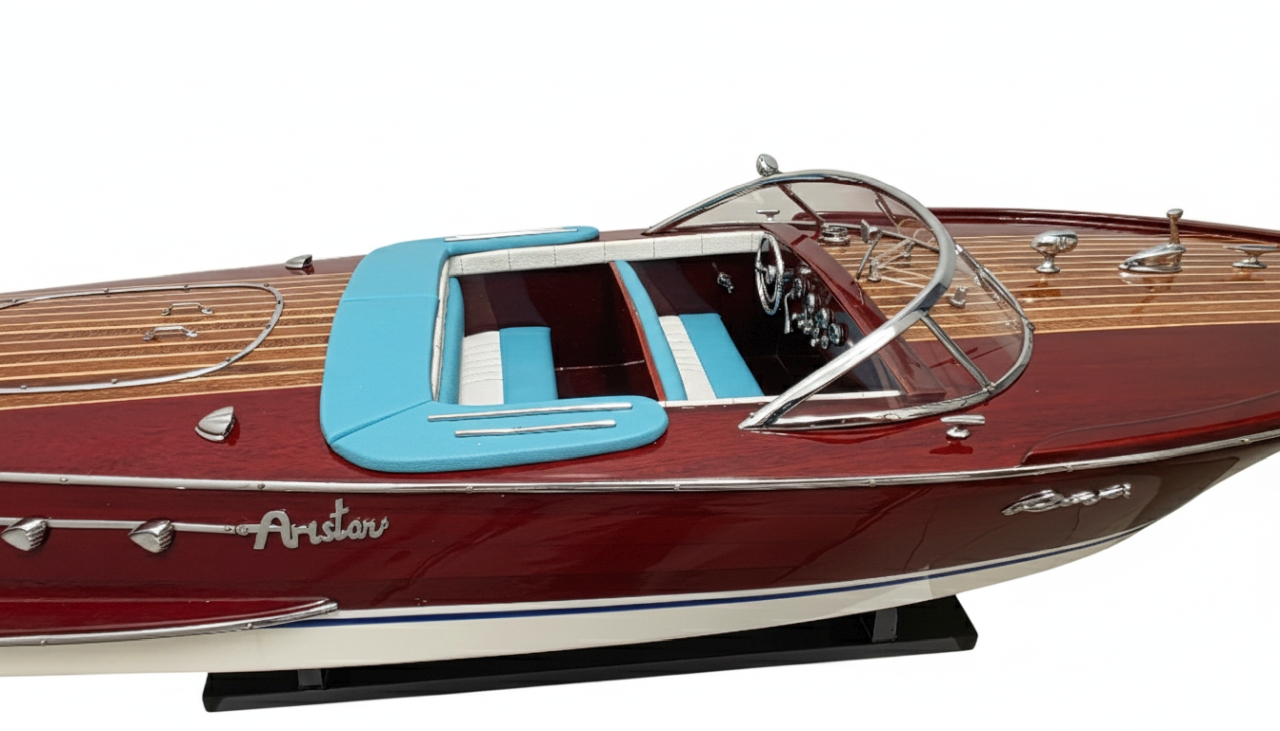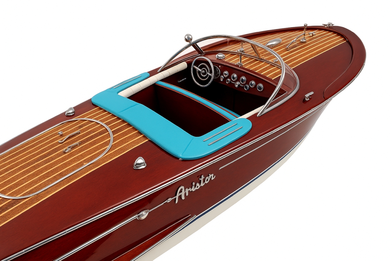 Model Riva Super Ariston, który dziś trzymasz w rękach, odtwarza tę legendę w skali kolekcjonerskiej. Każdy szczegół, od ręcznie politurowanego mahoniu po metalowe detale – przywołuje ducha złotej ery włoskiej elegancji.
