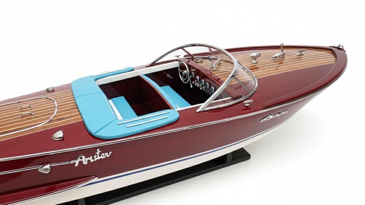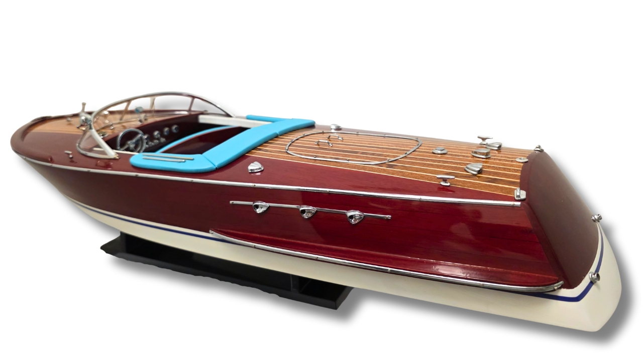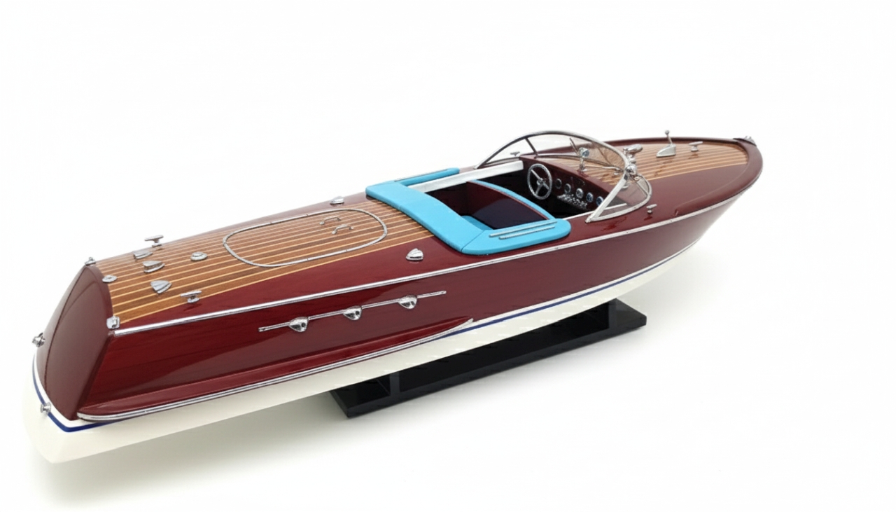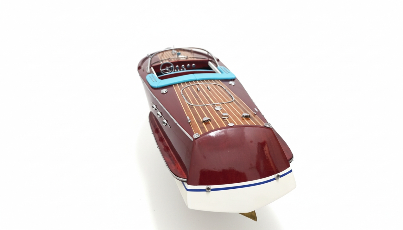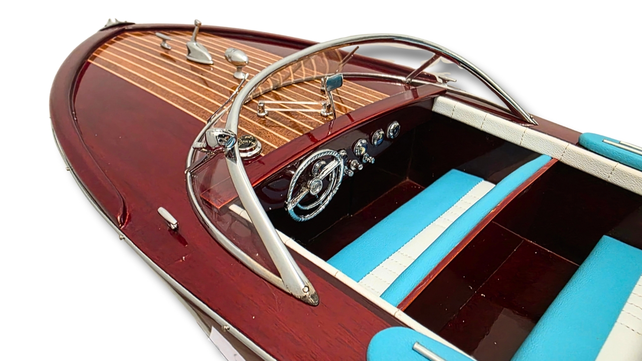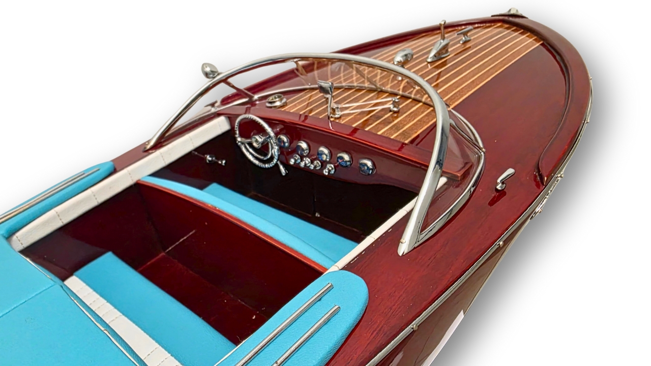 Model Riva Super Ariston, który dziś trzymasz w rękach, odtwarza tę legendę w skali kolekcjonerskiej. Każdy szczegół, od ręcznie politurowanego mahoniu po metalowe detale – przywołuje ducha złotej ery włoskiej elegancji.