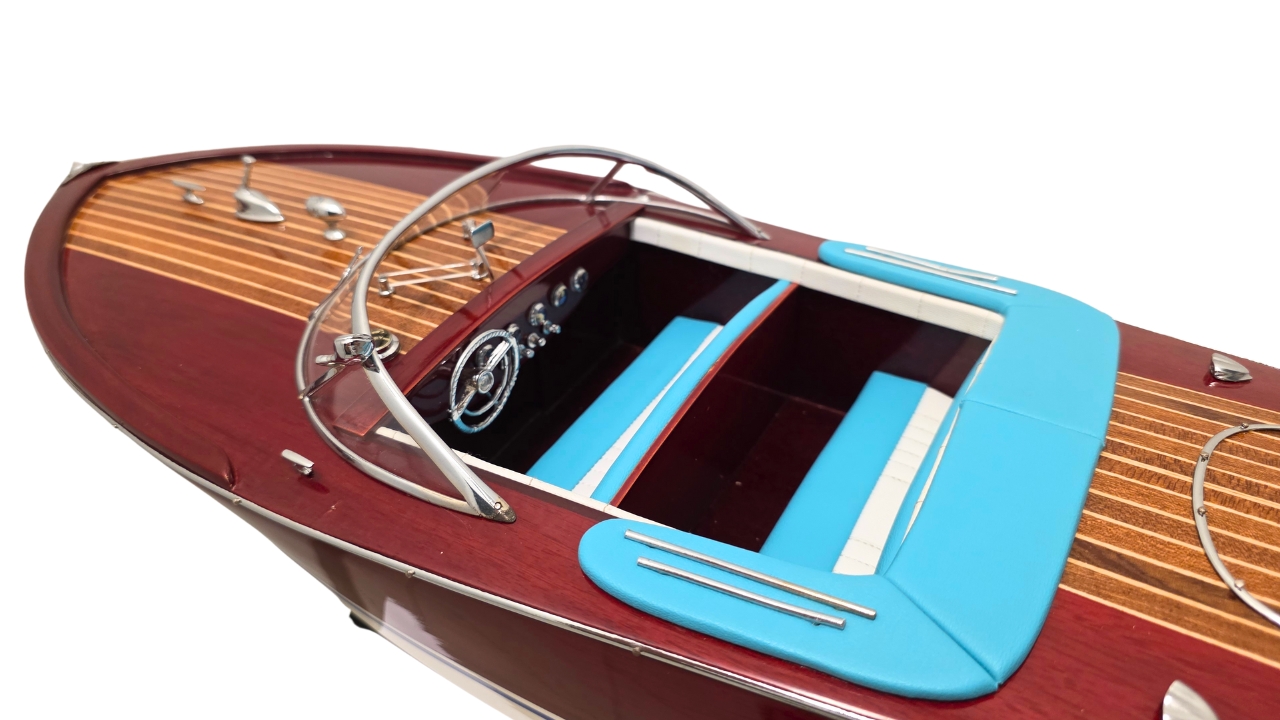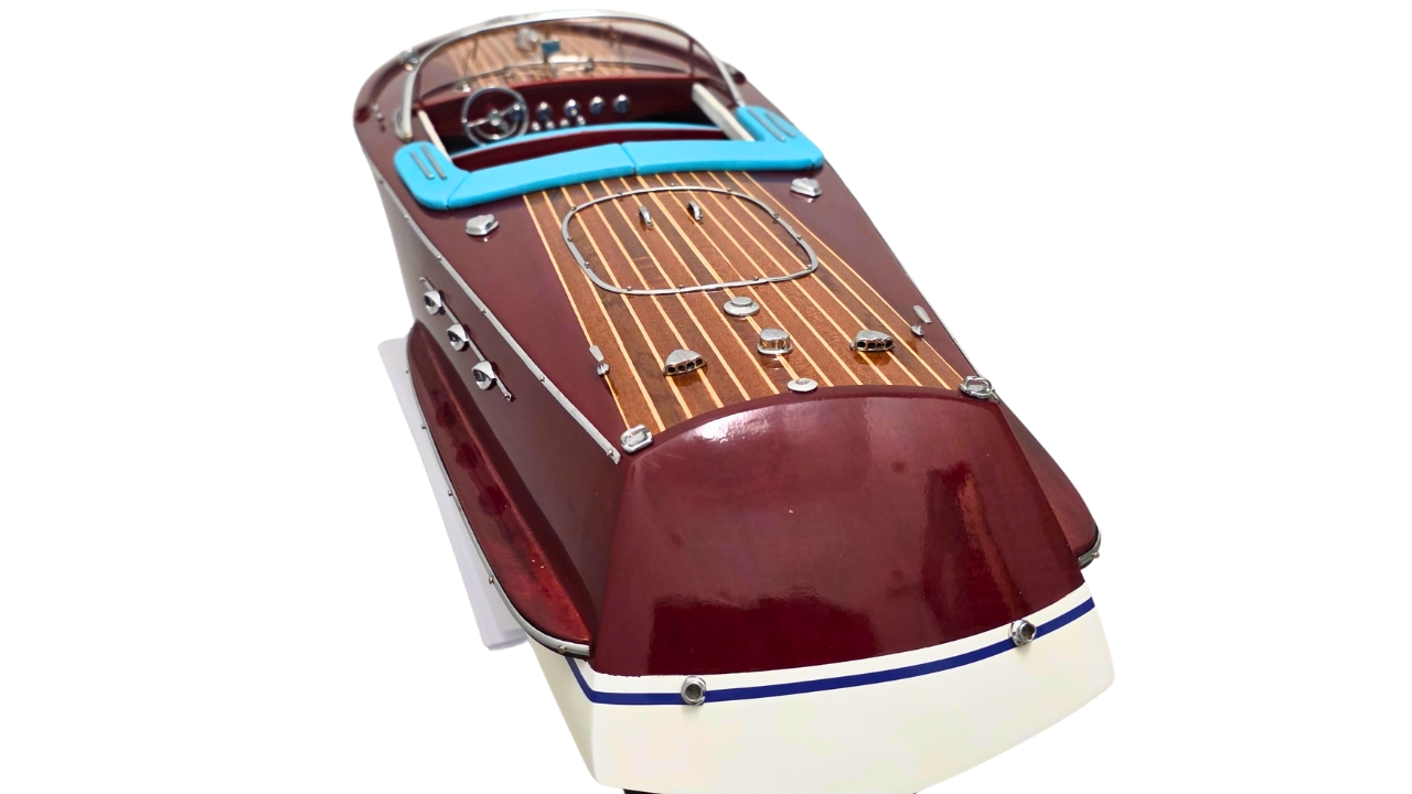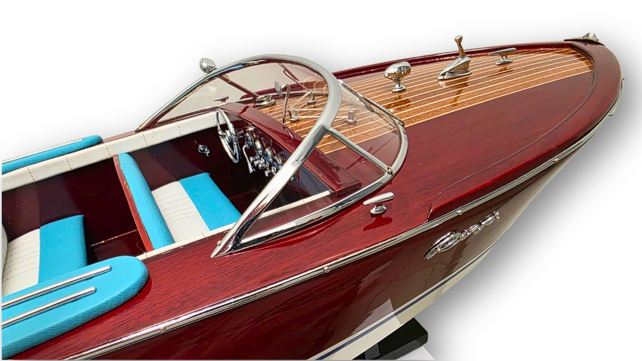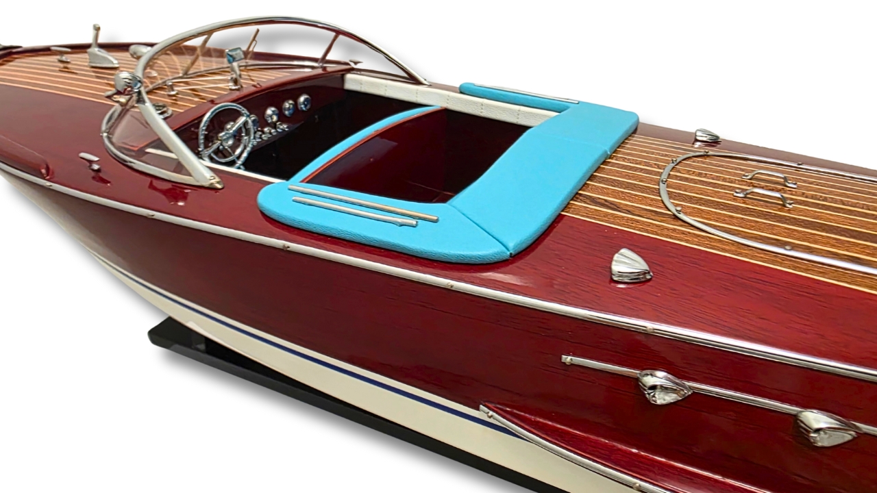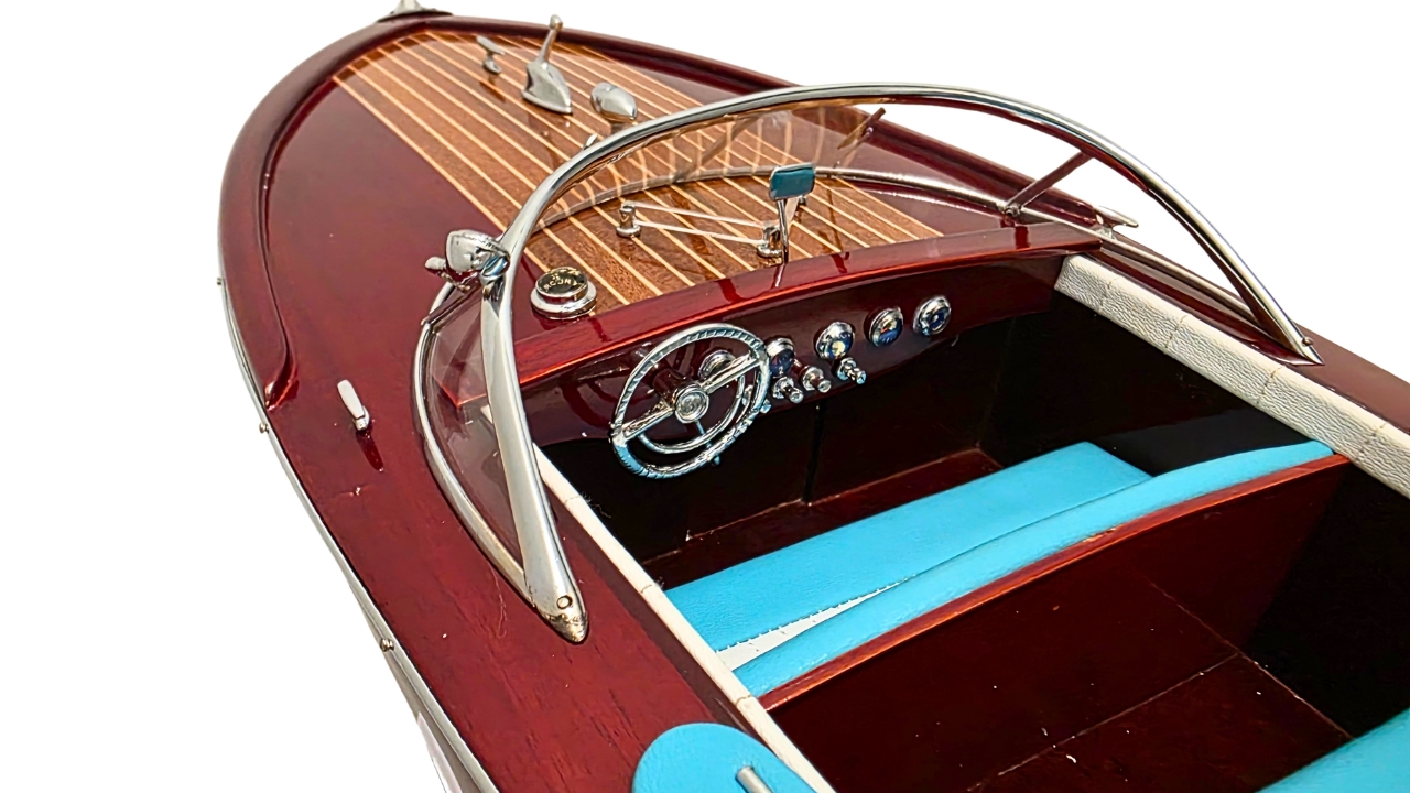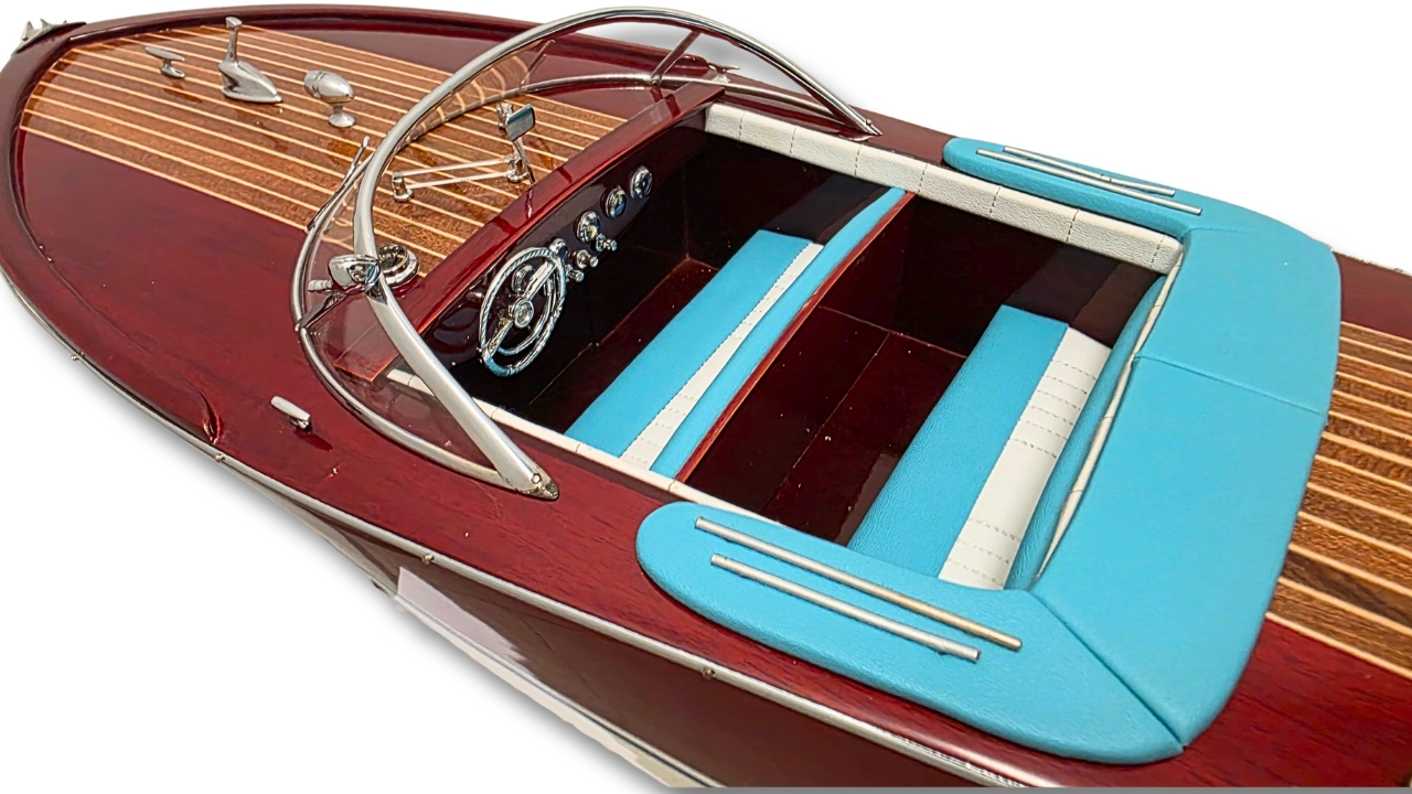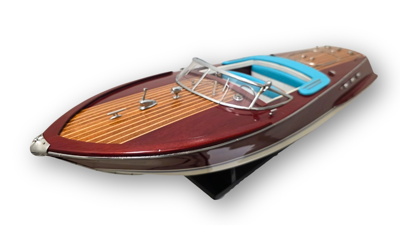 Model Riva Super Ariston, który dziś trzymasz w rękach, odtwarza tę legendę w skali kolekcjonerskiej. Każdy szczegół, od ręcznie politurowanego mahoniu po metalowe detale – przywołuje ducha złotej ery włoskiej elegancji.