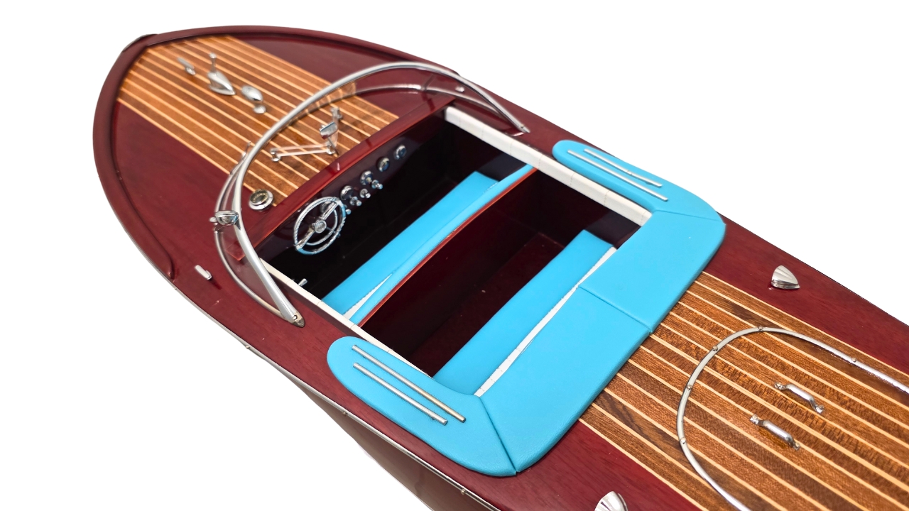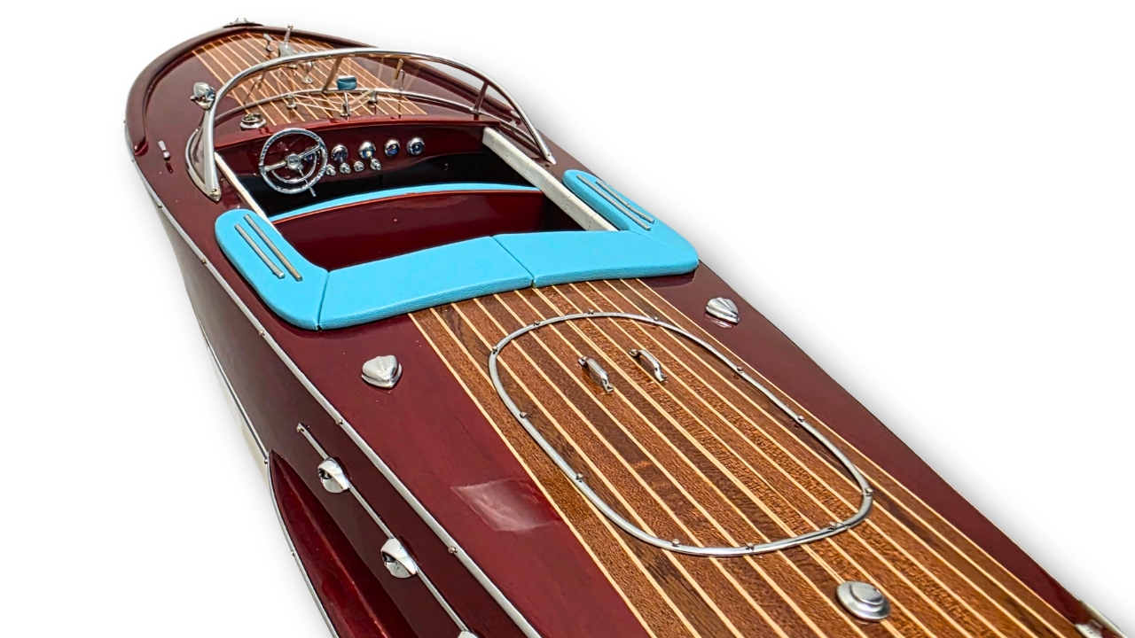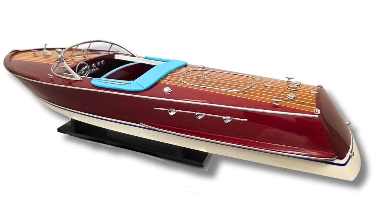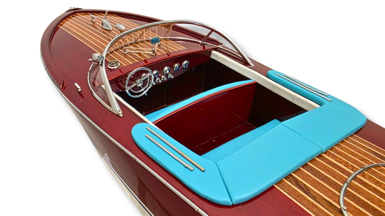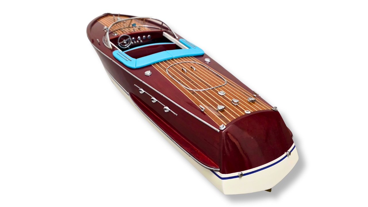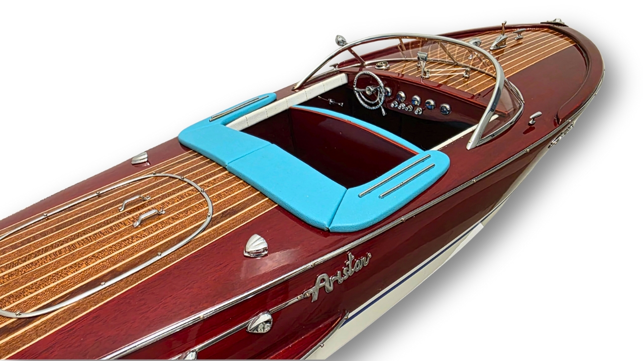 Model Riva Super Ariston, który dziś trzymasz w rękach, odtwarza tę legendę w skali kolekcjonerskiej. Każdy szczegół, od ręcznie politurowanego mahoniu po metalowe detale – przywołuje ducha złotej ery włoskiej elegancji.